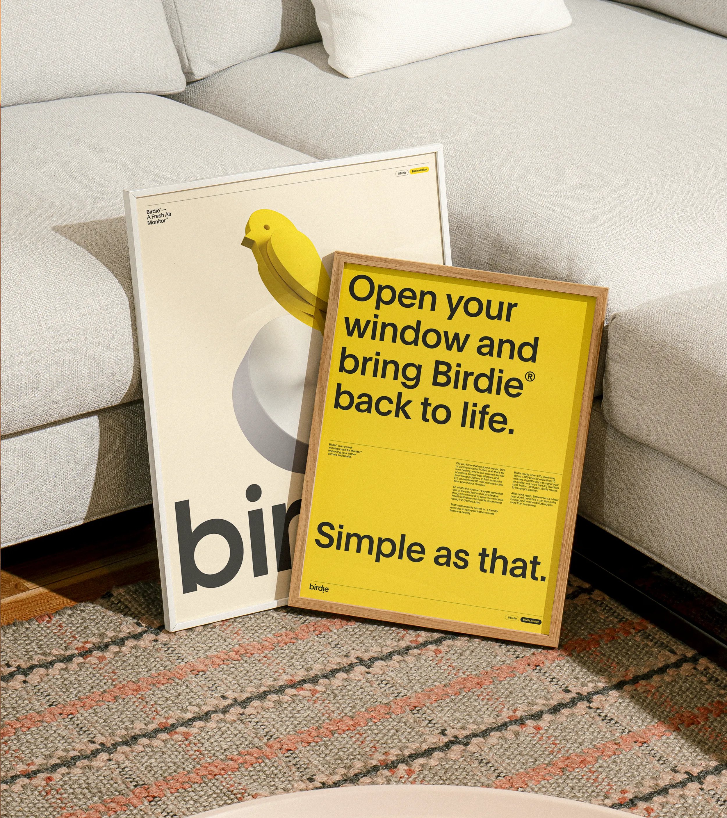 Birdie is a visual Fresh Air Monitor that helps people worldwide achieve a better indoor climate. When the bird dies, it's time to open your windows and bring it back to life.